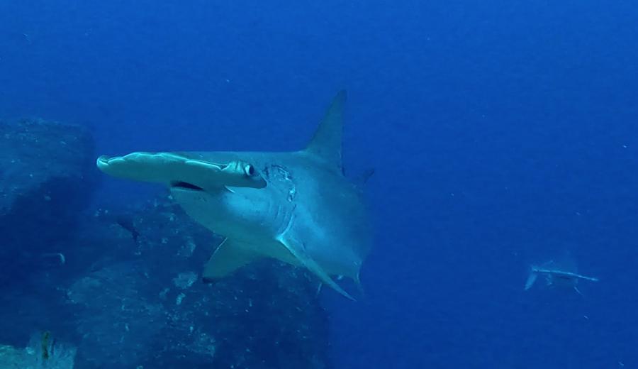 At Submerged Rock we saw whitetips moving in and out of the swim through, and marble rays. Day 4 at Small Dos Amigos we saw Galapagos shark cleaning station activity and some hammerheads, but the highlight came at the end when we saw another whale shark toward the surface!