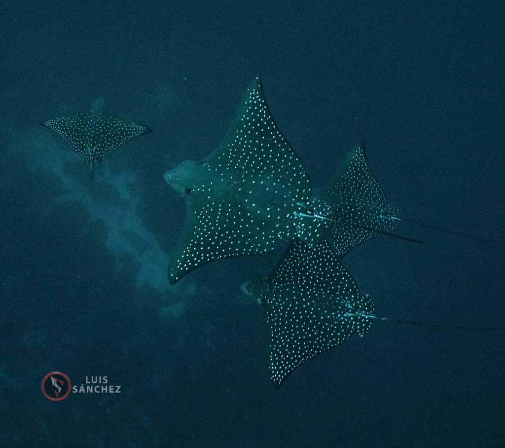 The following day at Dirty Rock we had an astounding dive. With visibility improving in the first few meters and a cool thermocline under 80ft at 78F, it was a joy to see schools of jacks circling the pinnacle, as well as four eagle rays, many marble rays, hammerheads, and even Dolphins during the safety stop! The next dive at Punta Maria was quiet in comparison, with a strong current, but the lack of bigger sharks didn’t dampen our spirits.