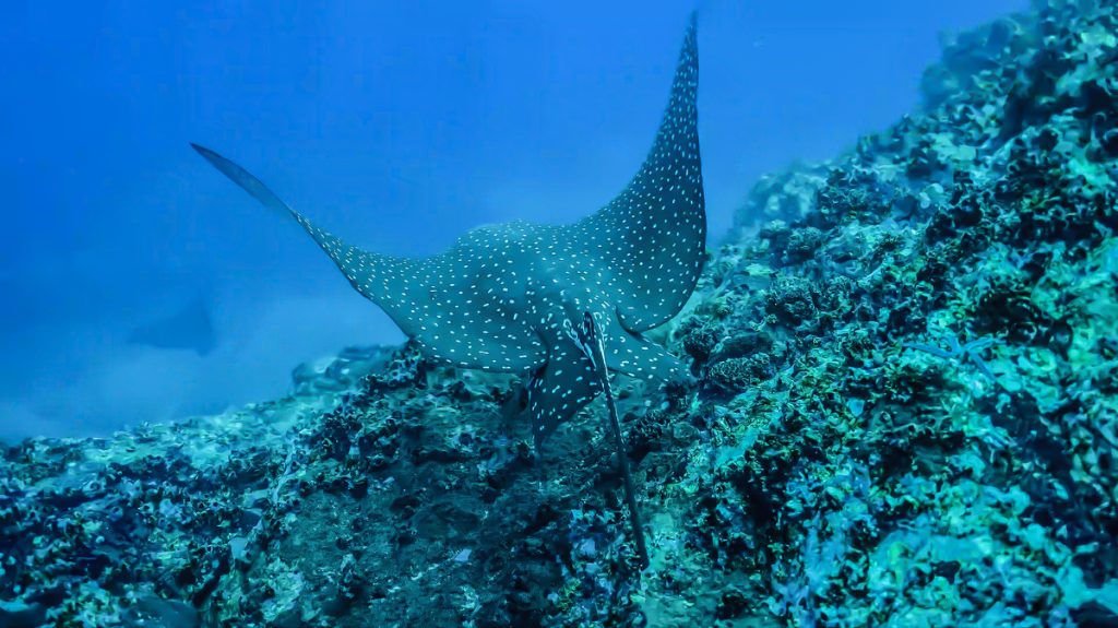For our final day, we revisited both Alcyone and Dirty Rock, where eagle rays and a Galapagos shark graced us with their presence. During our last dive at Manuelita Outside, we encountered numerous whitetips and a large oceanic blacktip to bid us farewell.