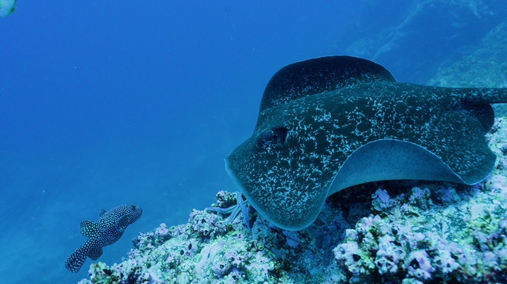 We began our adventure at Chatham Bay for our check-out dive, where we were greeted by many whitetip reef sharks and a multitude of fish. Our dive at Manuelita Out showed us a marble ray, more whitetips, and three yellowfin tunas hunting. Then in Manuelita Channel/Coral Garden, we played with a majestic giant manta ray! The coral reef here was teeming with fish, and bluefin trevallies were actively hunting creole fish.